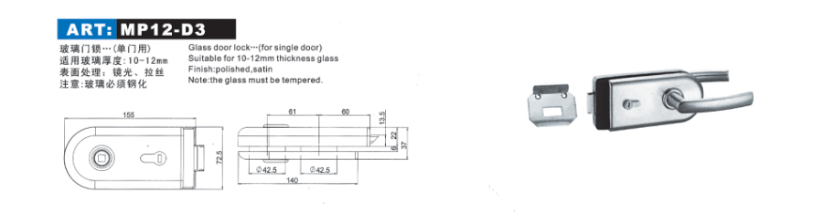 • 產品名稱:玻璃鎖